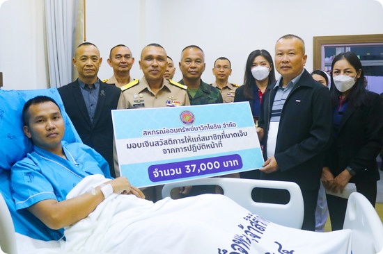 พล.ร.ต.ขวัญชัย ขำสม ประธานกรรมการดำเนินการ สหกรณ์ออมทรัพย์นาวิกโยธิน จำกัด และฝ่ายจัดการ เข้าเยี่ยมให้กำลังใจ จ.อ.เทอดพงษ์ ผมนะรา สมาชิก สหกรณ์ออมทรัพย์นาวิกโยธิน จำกัด ผู้ปกป้งอธิปไตยของชาติ พร้อมมอบสวัสดิการเงินสงเคราะห์เพื่อการดำรงชีพแก่สมาชิกที่บาดเจ็บ และเงินเยี่ยมสมาชิกที่บาดเจ็บจากการปฏิบัติหน้าที่ในเวลาเหตุฉุกเฉิน รวมเป็นเงิน สามหมื่นเจ็ดพันบาทถ้วน โดยมี น.อ.ภิสักก์ ก้อนเมฆ รองผู้อำนวยการฝ่ายสนับสนุน ให้การต้อนรับ ณ โรงพยาบาลสมเด็จพระนางเจ้าสิริกิติ์ กรมแพทย์ทหารเรือ เมื่อวันที่ 29 ธ.ค.68