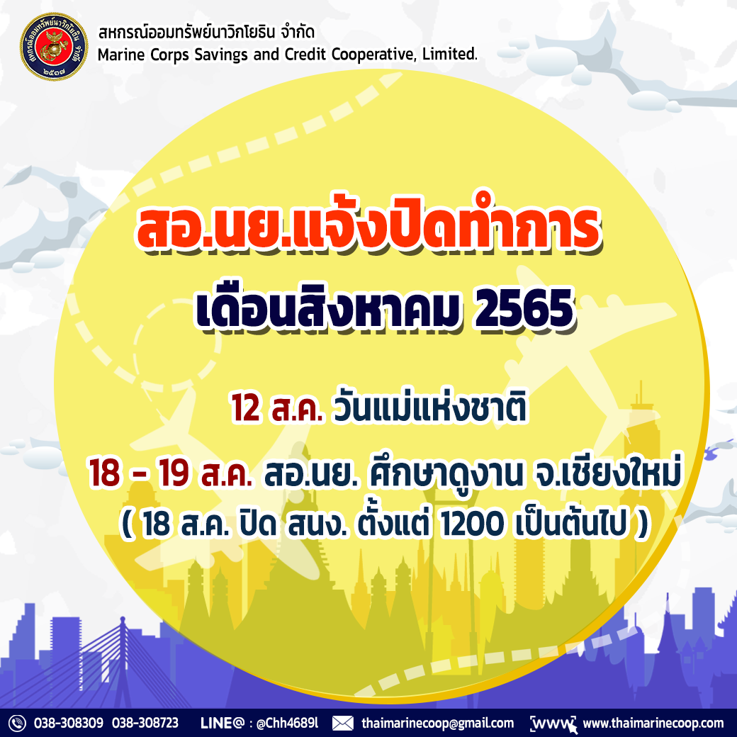 สอ.นย.แจ้งปิดทำการ เดือนสิงหาคม